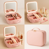 حقيبة جمالك المضيئة للمكياج صُممت لتكون رفيقتكِ الأنيقة في السفر بمرآة بإضاءة LED قابلة للتعديل وسعة منظمة بدقة، تحافظ على مستحضراتكِ مرتّبة، وتحول أي مكان إلى ركن تجميلك الخاص.